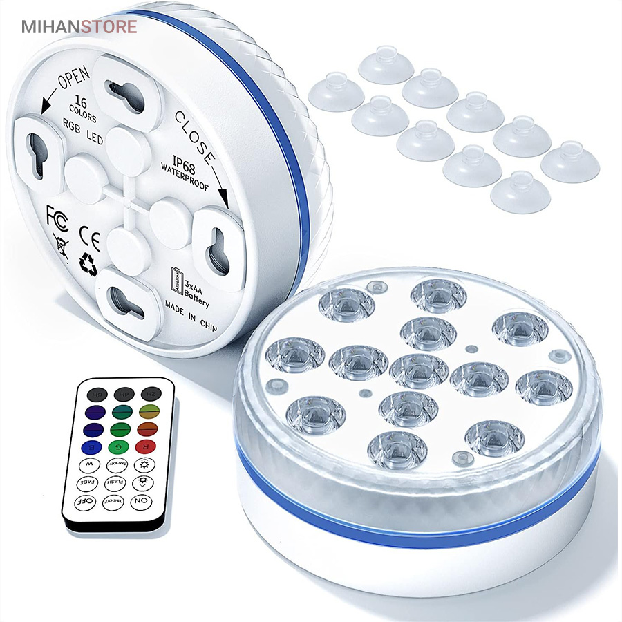 ایده آل برای استخر، وان حمام، حوض، فواره، آبشار، آکواریوم، گلدان، باغ، باغچه، عروسی، مهمانی و غیره. این محصول طراحی ضدآب بسیار قدرتمندی دارد، حلقه مهر و موم خارجی سیلیکاژل مقاوم در برابر حرارت دارای اثر ضد آب بهتری نسبت به سایر چراغ های استخر دارد، از ورود کامل آب جلوگیری می کند و عمر طولانی را تضمین می کند. نمای بیرونی ABS ضخیم شده، محافظت در برابر خوردگی و سفتی را نشان می دهد. دارای 16 رنگ، 5 سطح روشنایی، 3 حالت نور و 3 عملکرد تایمر (2 ساعت، 4 ساعت، 6 ساعت)، شما می توانید آن را به دلخواه تنظیم کنید.