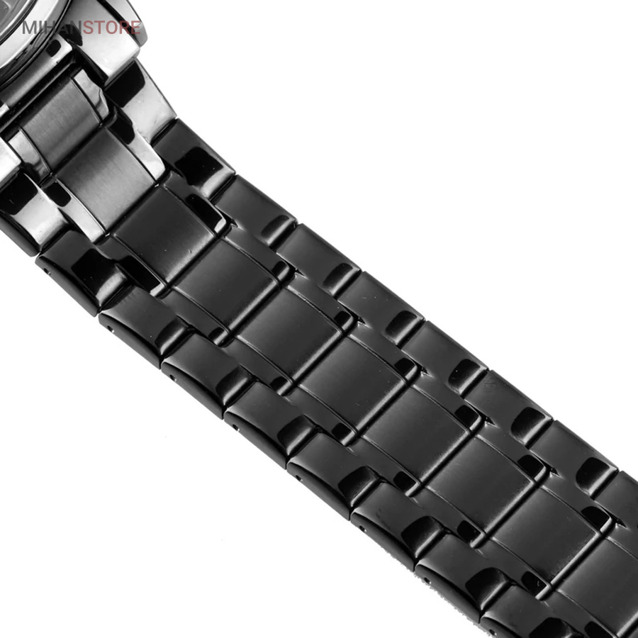 تنها یک ابزار زمان‌سنجی نیست؛ بلکه اکسسوری‌ای‌ست که استایل و شخصیت را هم‌زمان بازتاب می‌دهد. طراحی نیمه‌اسکلتون صفحه، با جزئیات مکانیکی و حس صنعتی، در ترکیب با رنگ مشکی یکدست بدنه، بند و صفحه، ظاهری مدرن، قدرتمند و متمایز به این ساعت بخشیده است. بدنه‌ی استیل مقاوم و بند استیل مشکی، آن را به گزینه‌ای کاربردی برای موقعیت‌های روزمره، رسمی، ورزشی یا استایل فشن تبدیل کرده است.